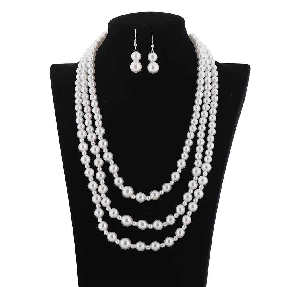 Multi-tiered Tassel Necklace with Imitation Pearls and European Wedding Necklace