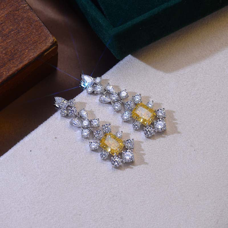 Rectangular Yellow Zircon Flower Tassel Drop Earrings