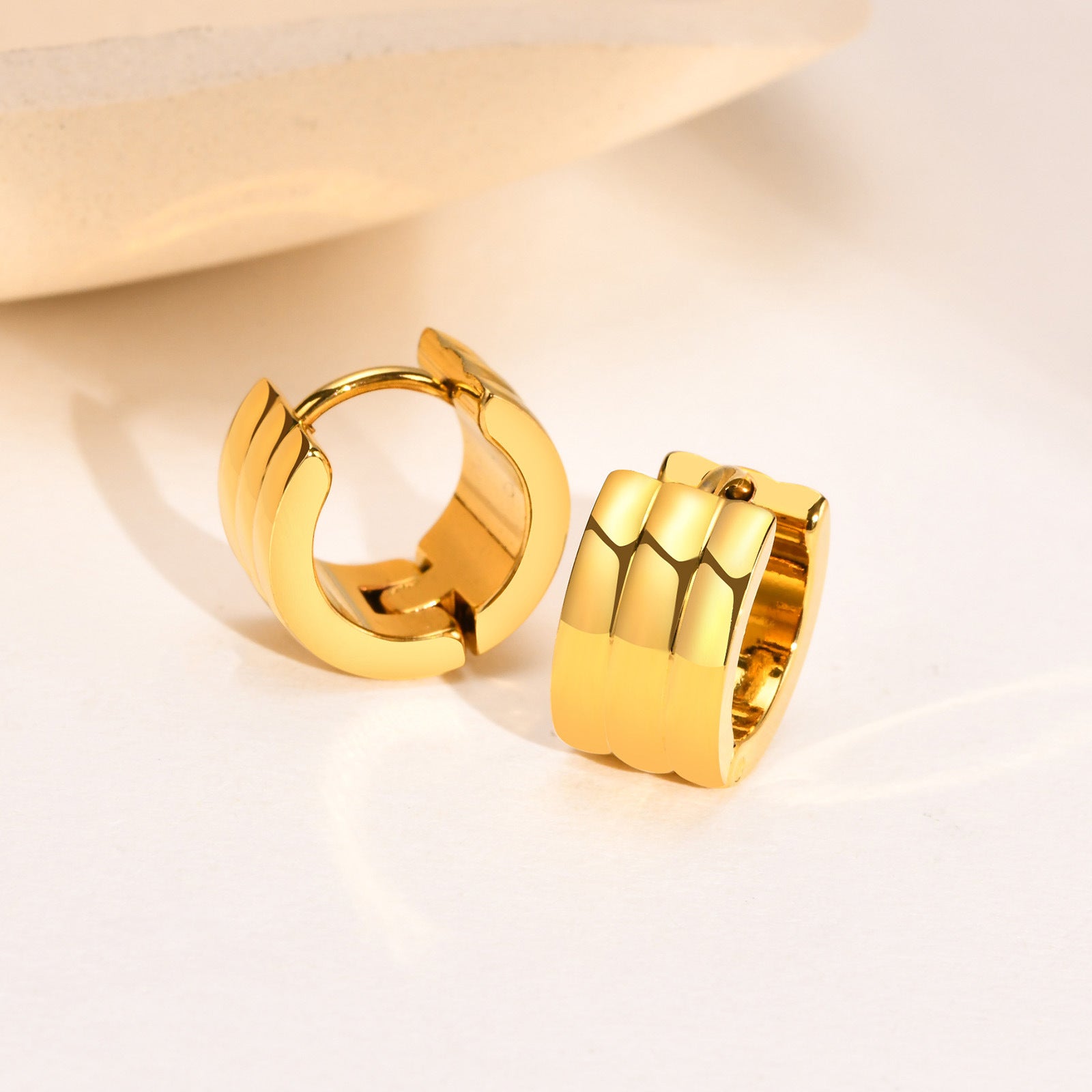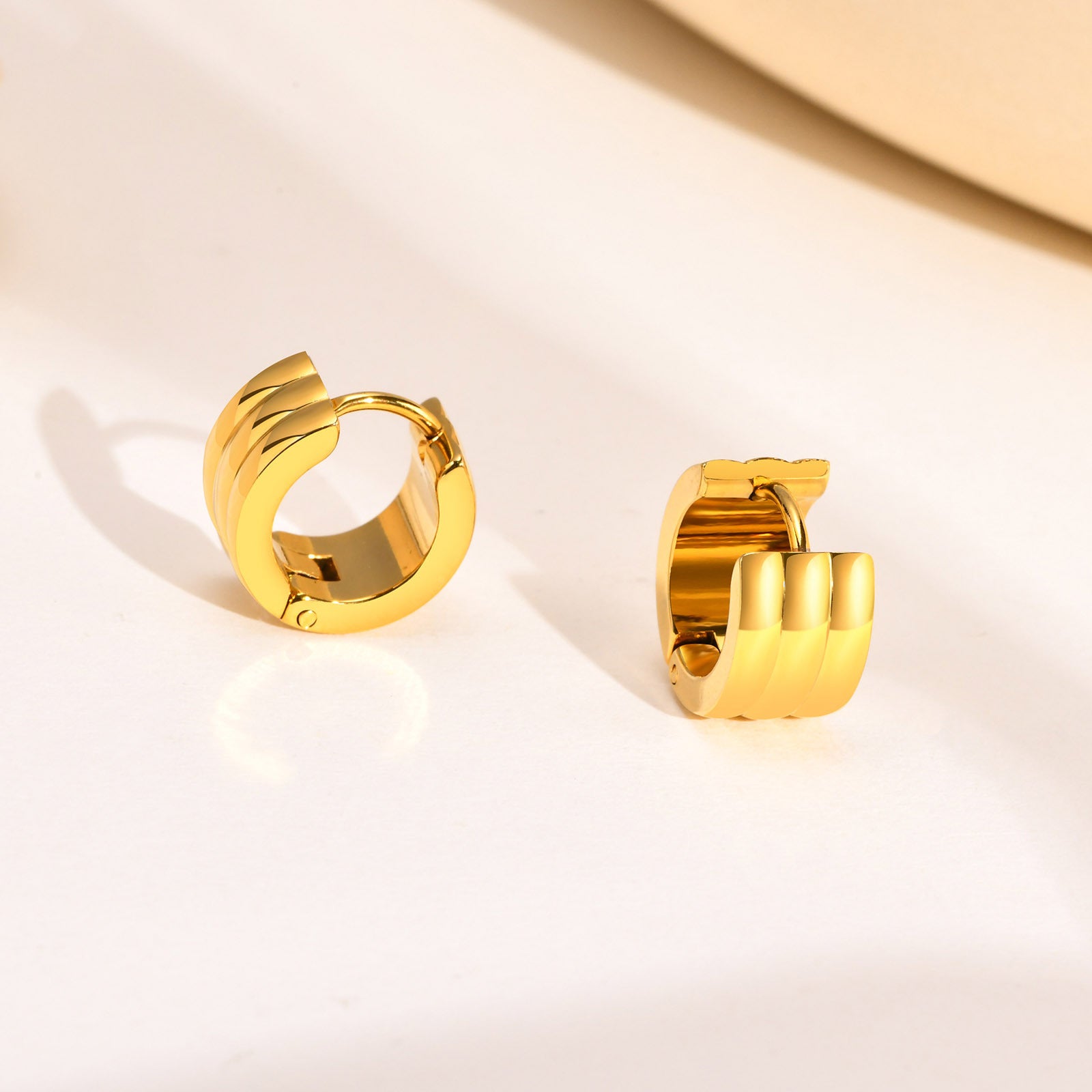 Discover the exquisite ins style European and American earrings Titanium steel earrings Stainless steel three arc earrings Ear buckle 18k gold fashion, where contemporary design meets timeless elegance. Crafted from high-quality titanium and stainless steel, these earrings showcase a stunning three-arc design, perfect for elevating your everyday look or adding a touch of sophistication to any event.
