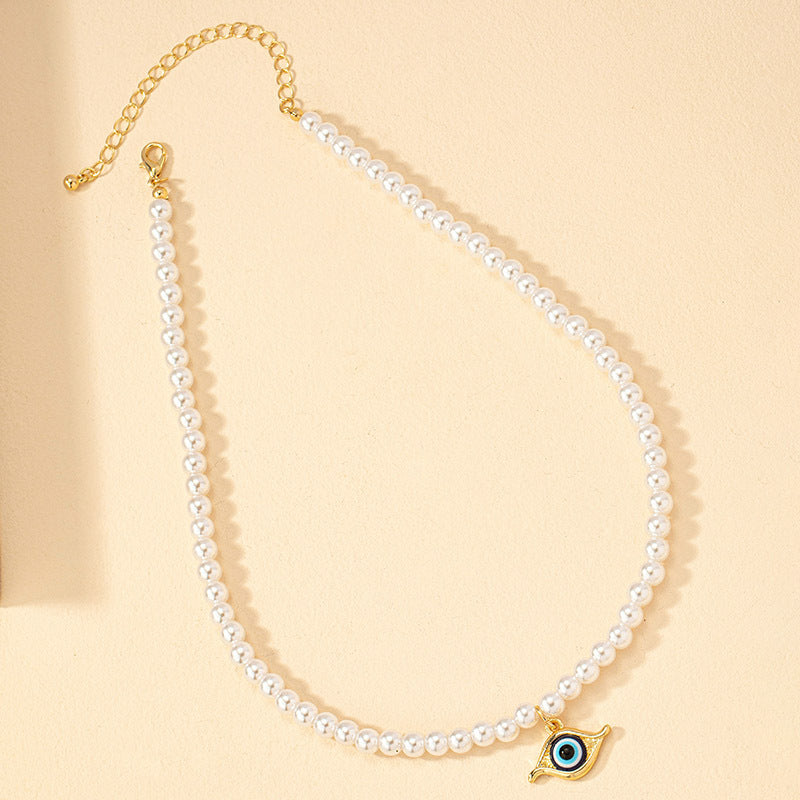 Indulge in elegance and sophistication with the INS wind luxury design advanced sense imitation Pearl eye necklace. This exquisite clavicle chain features Pearl beaded devil's eye for a truly captivating look.