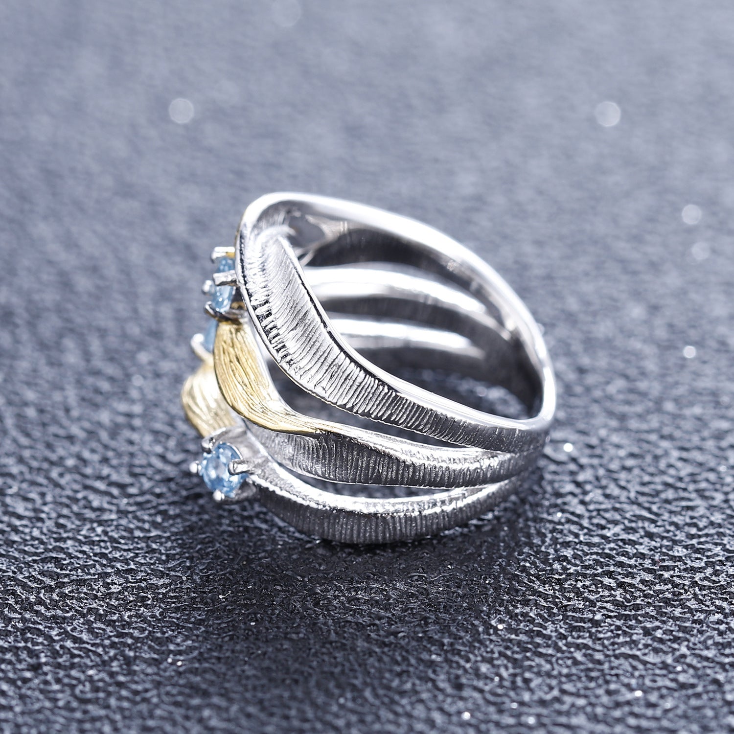 This beautiful Italian 925 Silver Natural Topaz Ring features three-layer Mobius rings design, making it a unique and stunning piece. Decorated with round-shaped natural gemstones, providing a perfect complement to the eye-catching design. A truly luxurious and elegant ring.