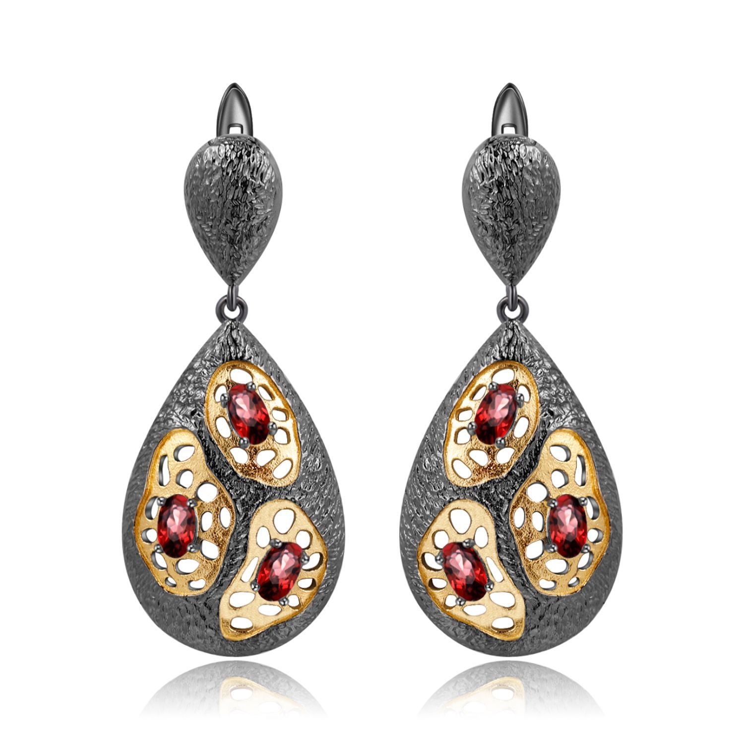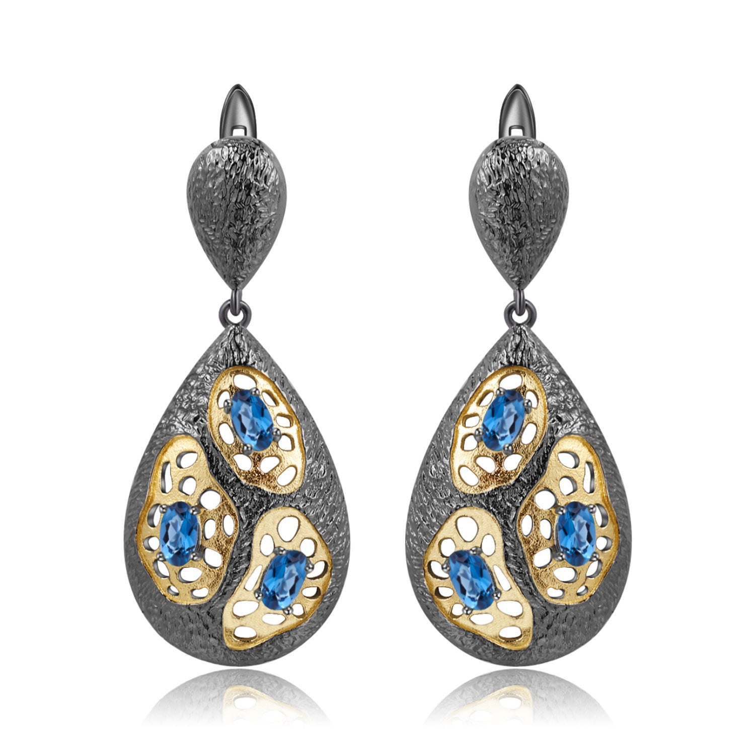 Italian Antique Style Inlaid Natural Colourful Gemstones Pear Drop Silver Earrings for Women