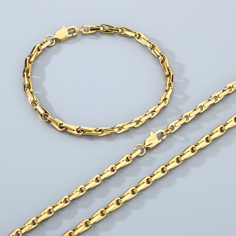 Discover the allure of Japan and Korea fashion with the melon seed chain bracelet and necklace set. Crafted in durable stainless steel, this simple, retro-inspired 5mm splicing chain delivers a polished, masculine silhouette for everyday wear. The coordinated necklace and bracelet create a unified look that effortlessly elevates any outfit, from casual streetwear to refined weekends.