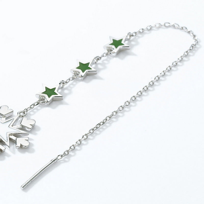 Sparkle this holiday season with these elegant Christmas Snowflake Red Agate Ear Line Sterling Silver Earrings. Featuring an enchanting snowflake design, embellished with red agate and dainty green stars, these earrings exude luxury and grace. Crafted with fine sterling silver, they are perfect for adding a touch of sparkle and sophistication to any look.