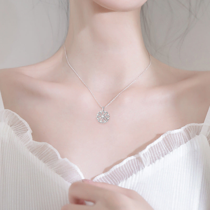 Hollow Zircon Cherry Blossom Pendant Silver Necklace