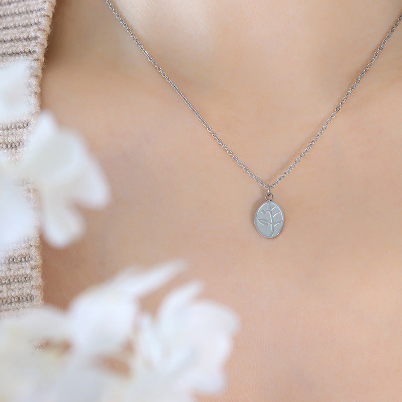 Embrace timeless beauty with our Japanese and Korean Instagram Wind Leaf Elliptical Pendant Necklace. Crafted from high-quality Titanium Steel and Gold Plated, this exquisite piece is designed to be non-fading, ensuring a lasting shine that will effortlessly elevate any outfit.