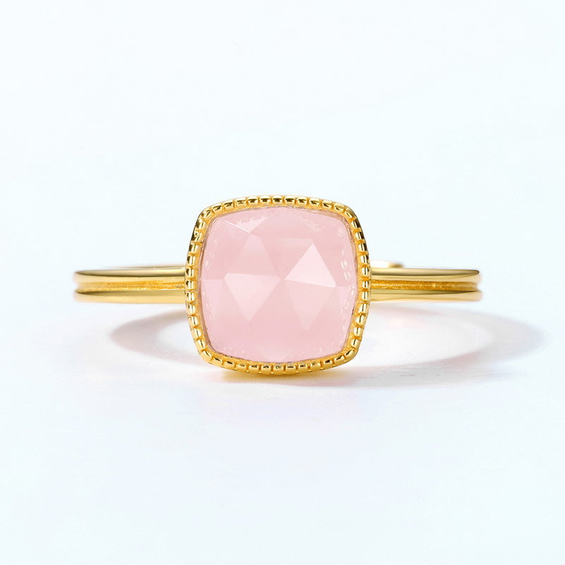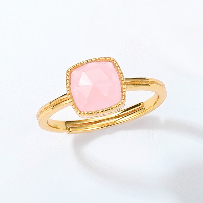 Simple Square Pink Crystal Opening Silver Ring