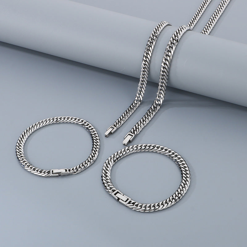 Hip-Hop Inspired Double-Woven Denim Chain Jewelry Set for Men - Stainless Steel Necklace & Bracelet