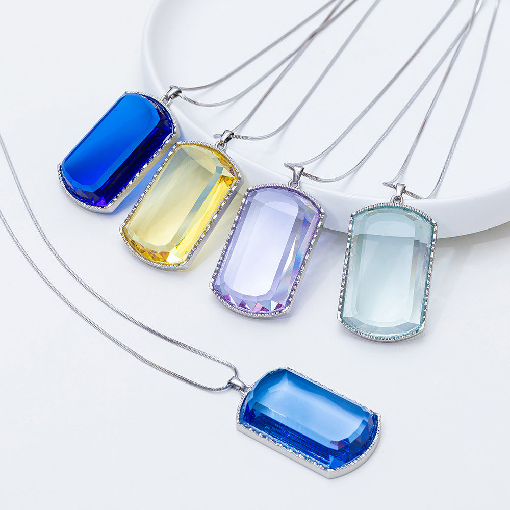 • Adds a pop of color and subtle sparkle to any outfit with its colorful square crystal pendant.