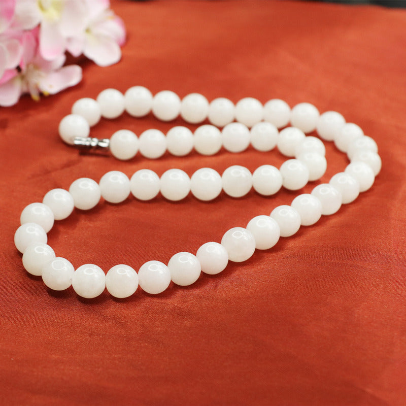 Hotan Jade White Jade Necklace Jade Beads Chain Jewelry