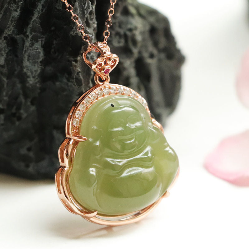 Elevate your style and embrace the spiritual essence of the Maitreya Buddha with this captivating S925 Silver Hotan Jade Pendant Necklace. Add it to your jewelry collection and let its beauty bring you luck and prosperity.
