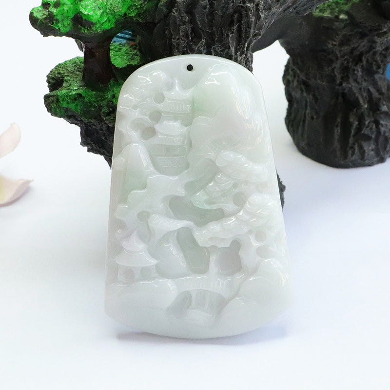 Indulge in the beauty of our Landscape Sculptured High-quality Jade Pendant from the Planderful Collection, named Fortune's Favor. Crafted with precision and elegance, this stunning piece is a true symbol of sophistication and grace.