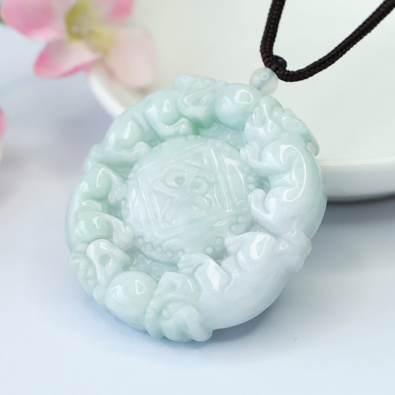 Elegantly designed and meticulously crafted, this pendant is not just a jewelry piece but a symbol of prosperity and positivity. Elevate your style while inviting good fortune into your life with the Natural Myanmar A Grade Jade Pixiu Ping'an Brand Pendant.