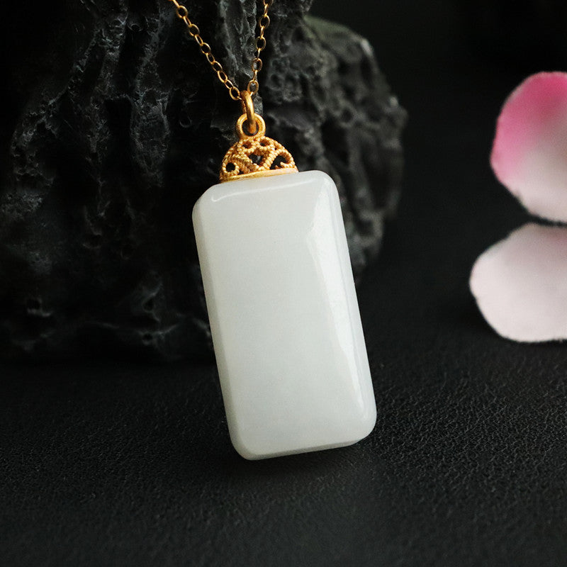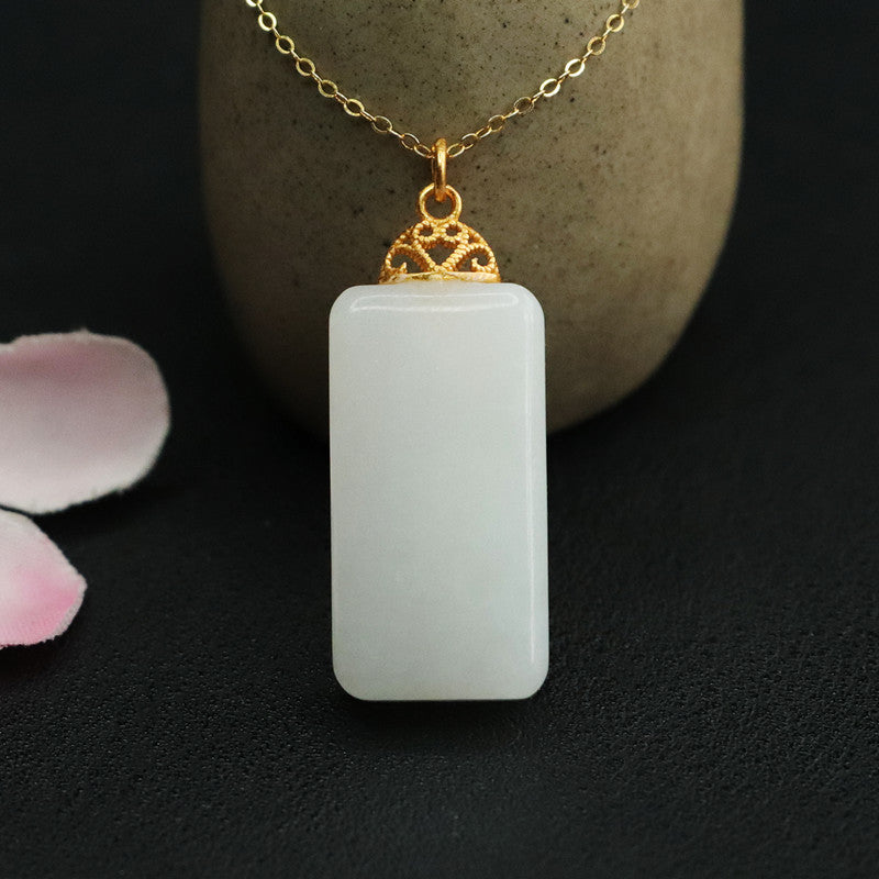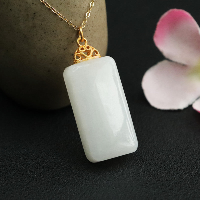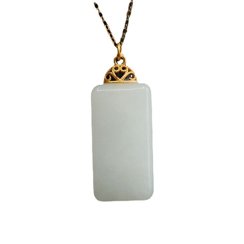 White Jade Tag Necklace with Natural Hetian Jade Pendant