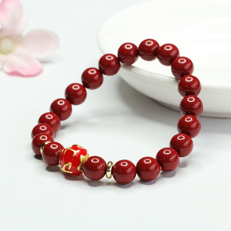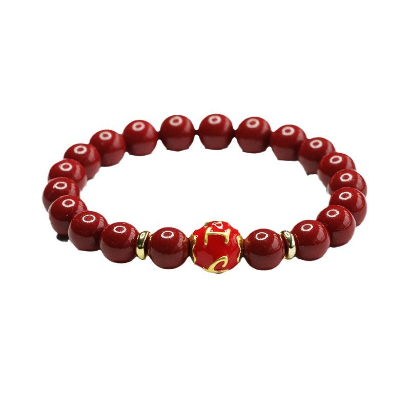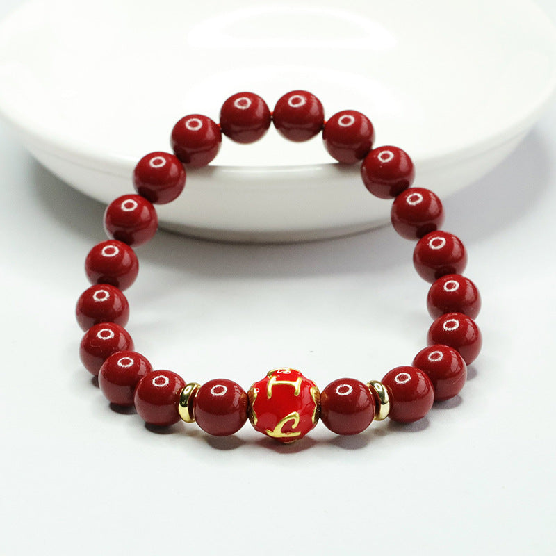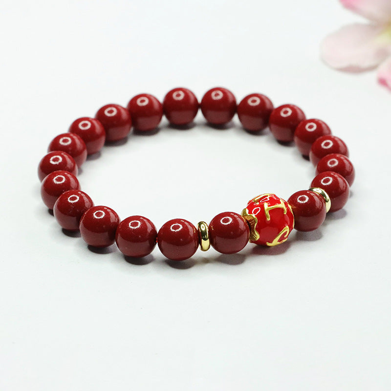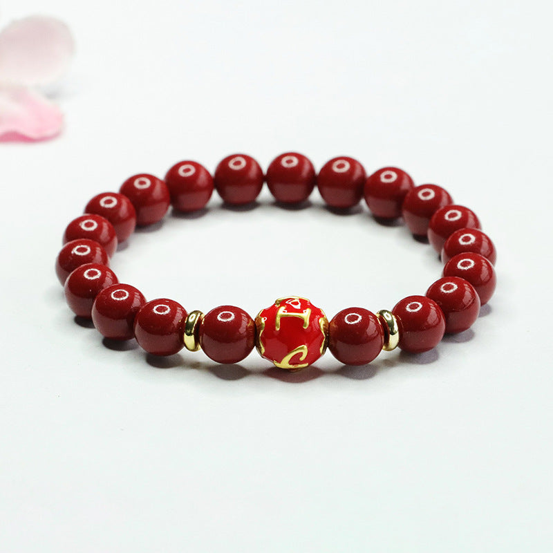 Elegantly designed and steeped in symbolism, this Purple Gold Sand Six Character Motto Bracelet is a captivating addition to any jewelry collection. Embrace the harmonious blend of tradition and elegance with this exquisite piece of cinnabar jewelry.
