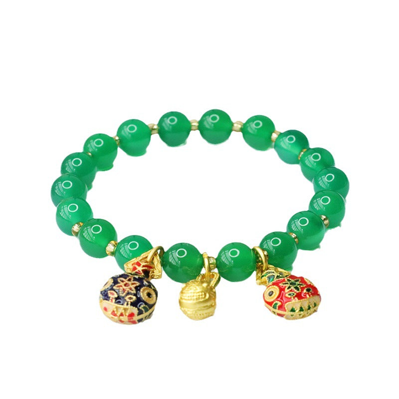 Discover the exquisite Green Chalcedony Hand String Enamel Color Swallowing Gold Beast Bracelet, a true embodiment of China-chic elegance. Crafted by Planderful, this Fortune's Favor bracelet features:
