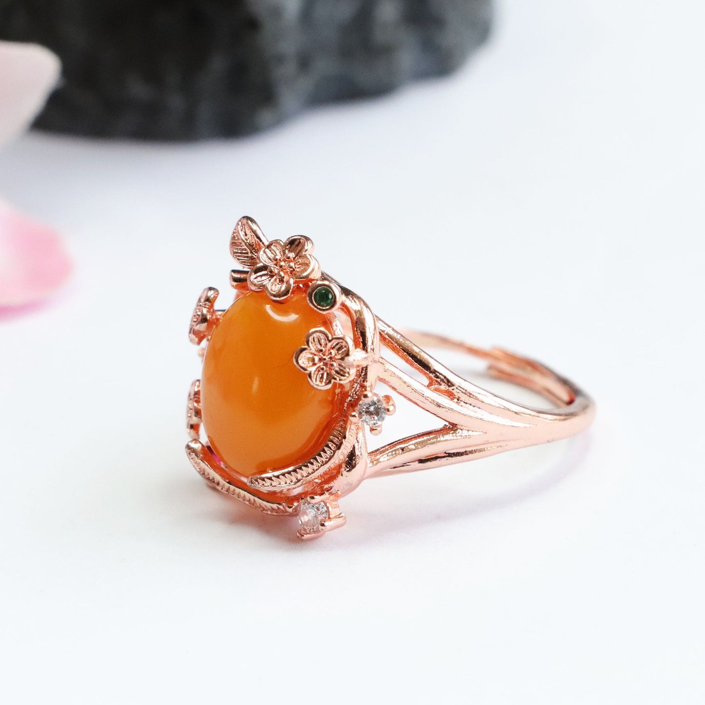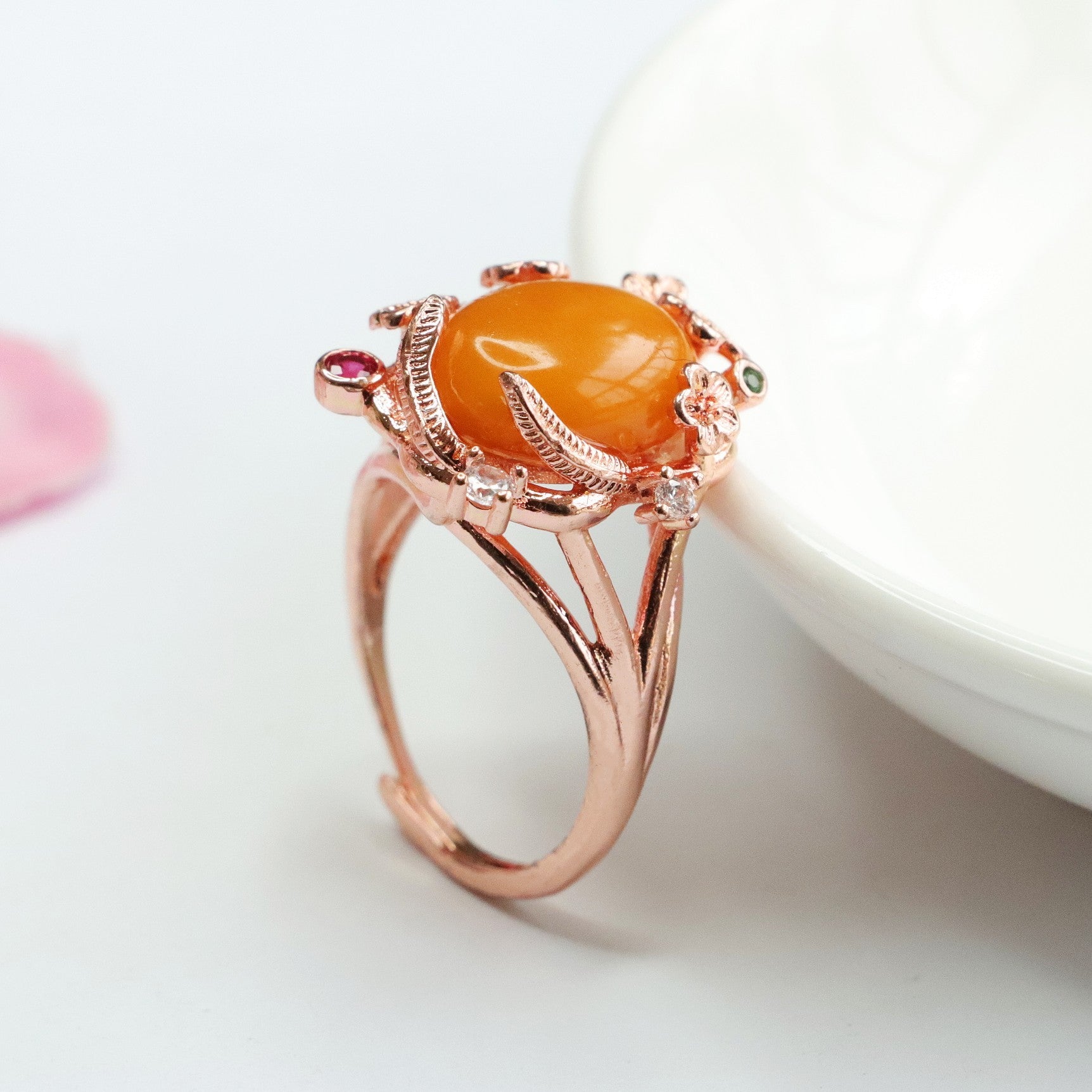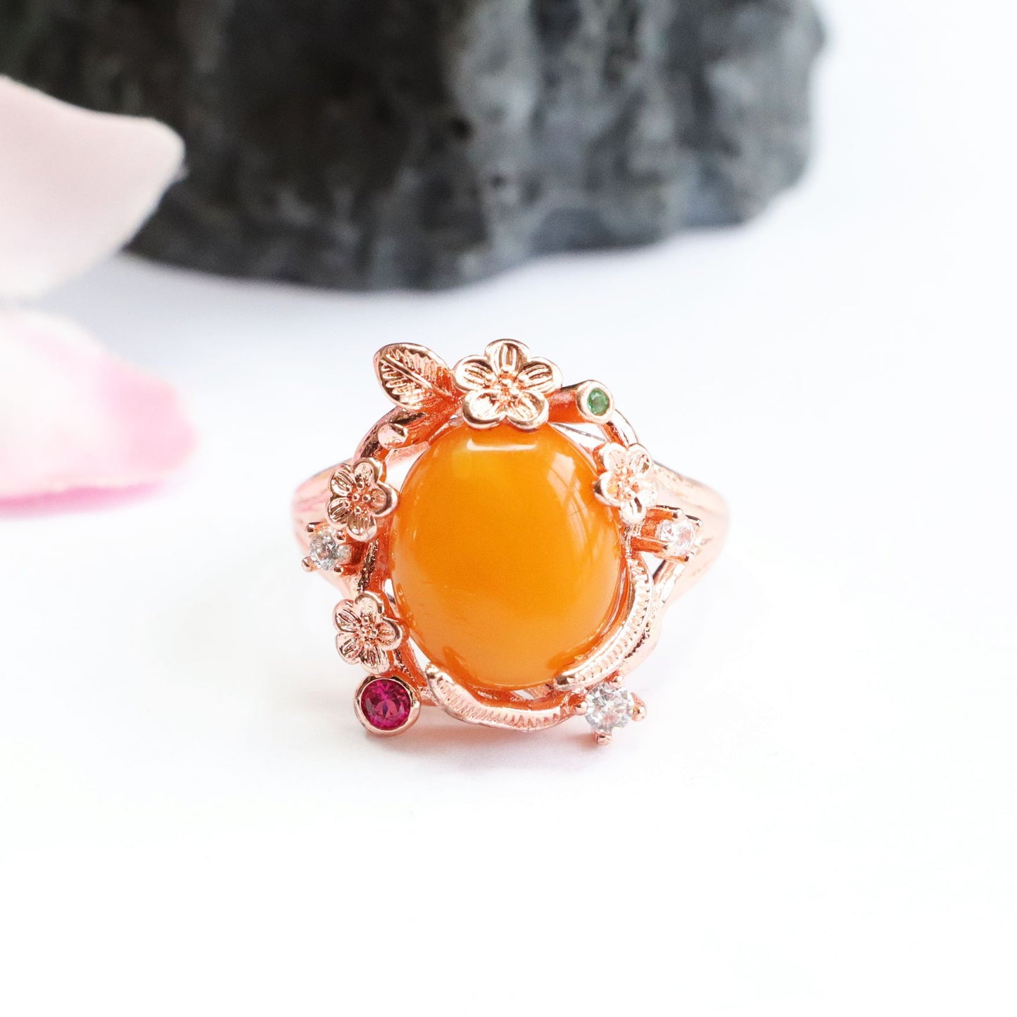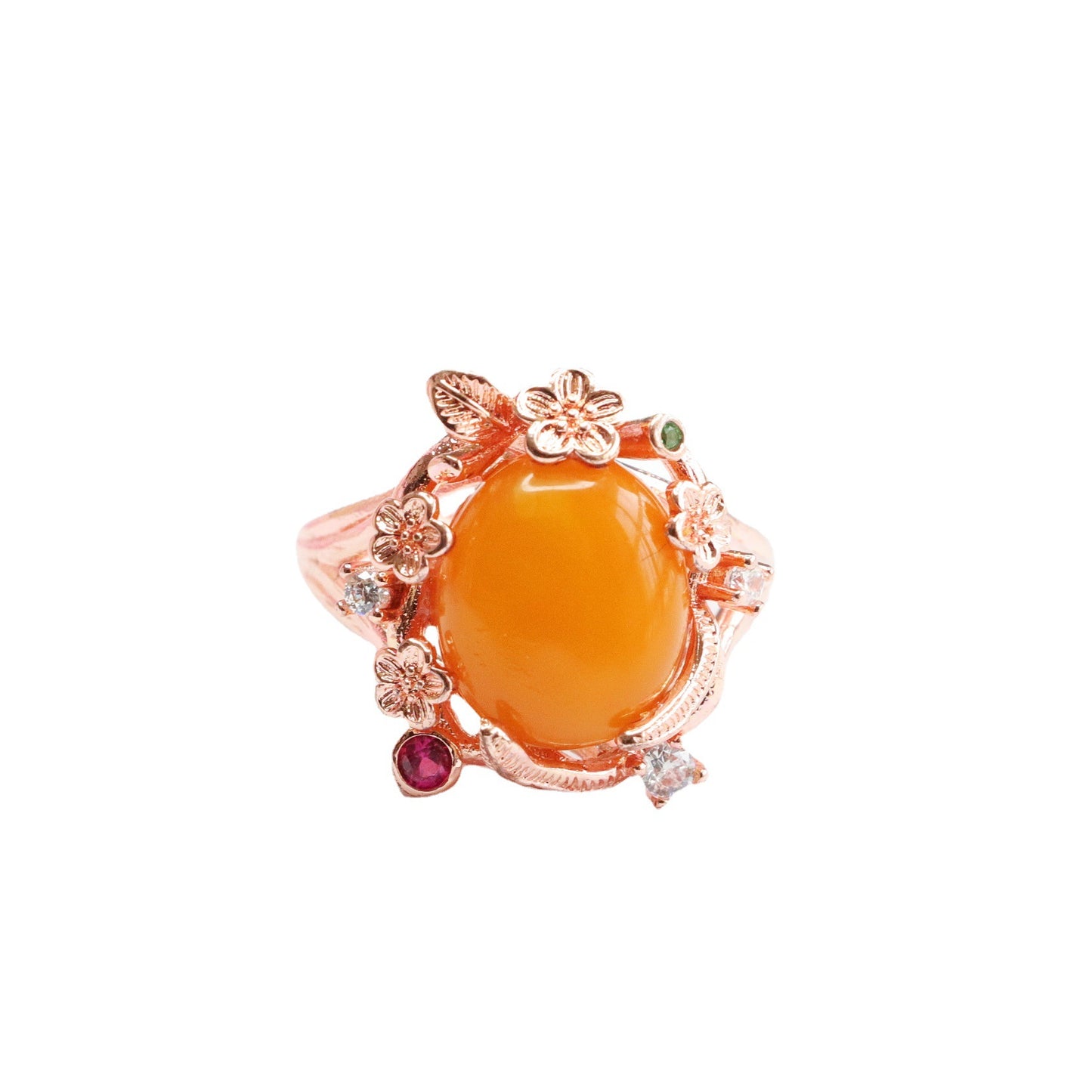 Embrace the elegance of natural elements with our stunning Honey Wax Amber Ring, featuring a delicate design of flowers and grass zircons. Handcrafted with care, this ring is a true masterpiece that exudes charm and sophistication.