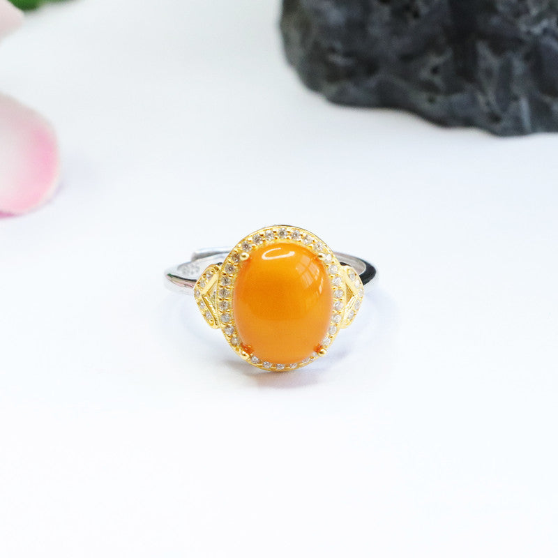 • Material: Crafted with high-quality S925 silver and adorned with natural honey wax old material amber