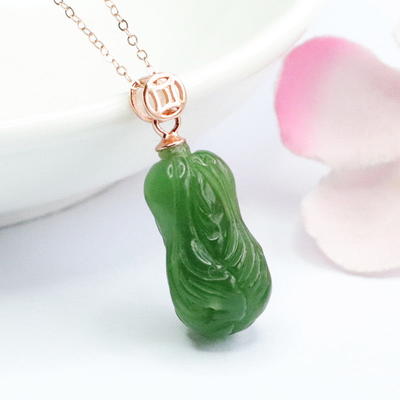 Fortune's Favor Sterling Silver Jade Pendant Necklace with Jasper Cabbage Copper Cash