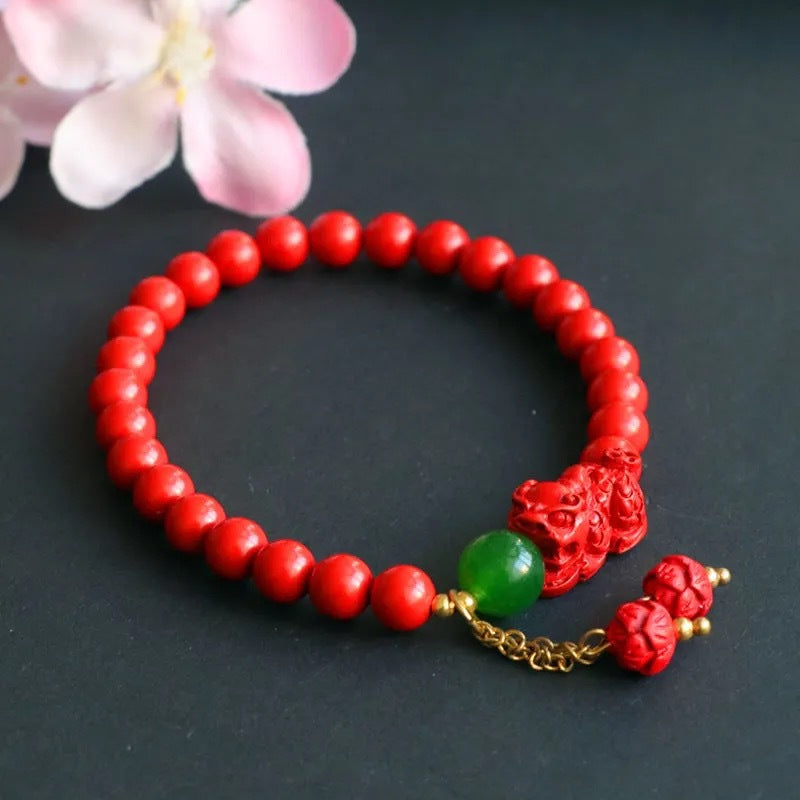 Embrace timeless beauty and auspicious symbolism with this exquisite Vermilion Sand Red Sand Pixiu Hand Bracelet. Elevate your style and invite good fortune into your life.