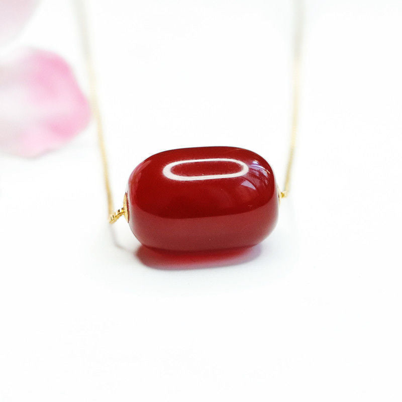 Elevate your look with our exquisite Natural Red Agate Bead Pendant Golden Necklace from the Fortune's Favor collection by Planderful. Crafted with sterling silver and adorned with stunning Agate Chalcedony beads, this necklace is a true statement piece.