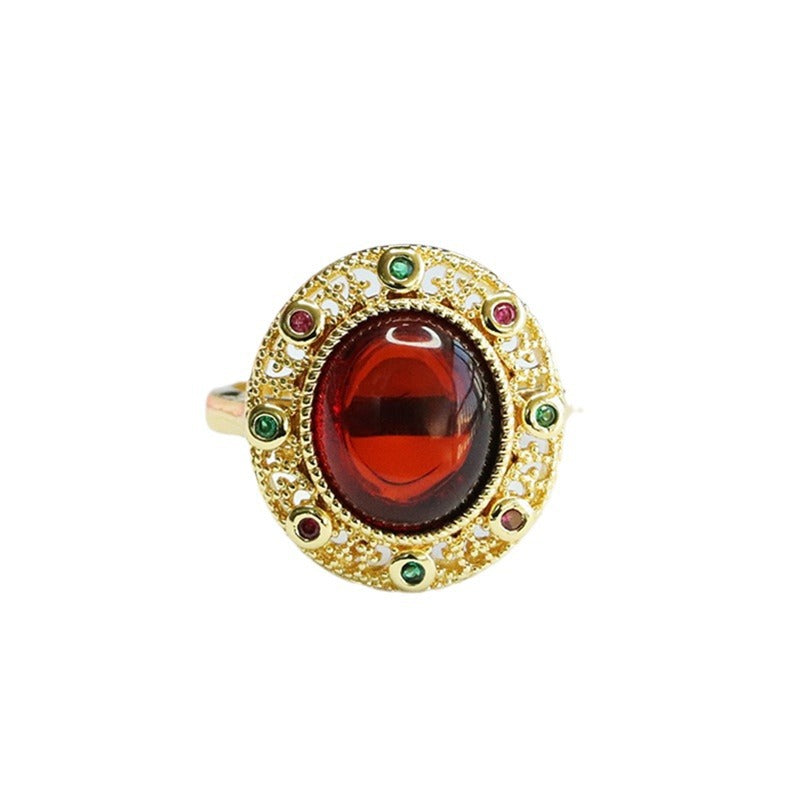 Introducing our exquisite Natural Oval Blood Amber Ring, a stunning piece from our Vintage Hollow Ring Jewelry collection, designed in an elegant Ethnic Style.