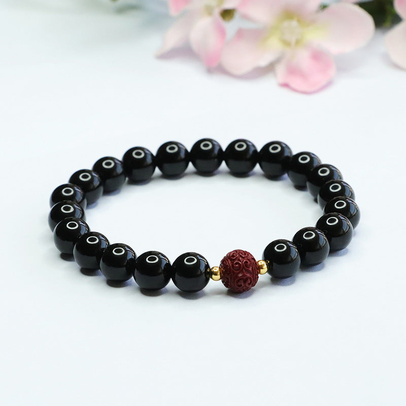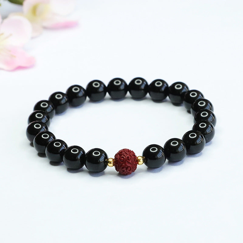 Elevate your ensemble with the timeless allure of black agate and the captivating allure of purple gold sand emblem beads. Whether worn alone or stacked with other bracelets, this piece is sure to become a cherished addition to your jewelry collection.