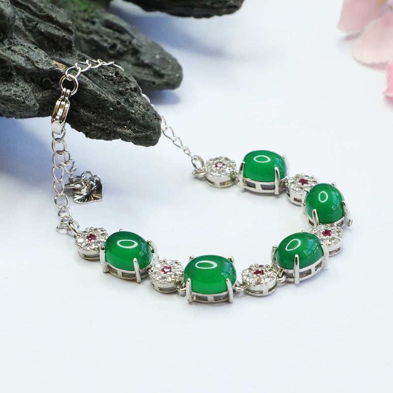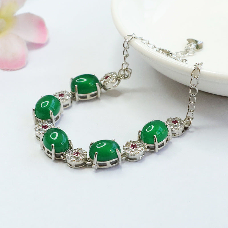 Sterling Silver Hand Chain Bracelet with Green Chalcedony