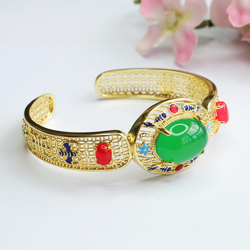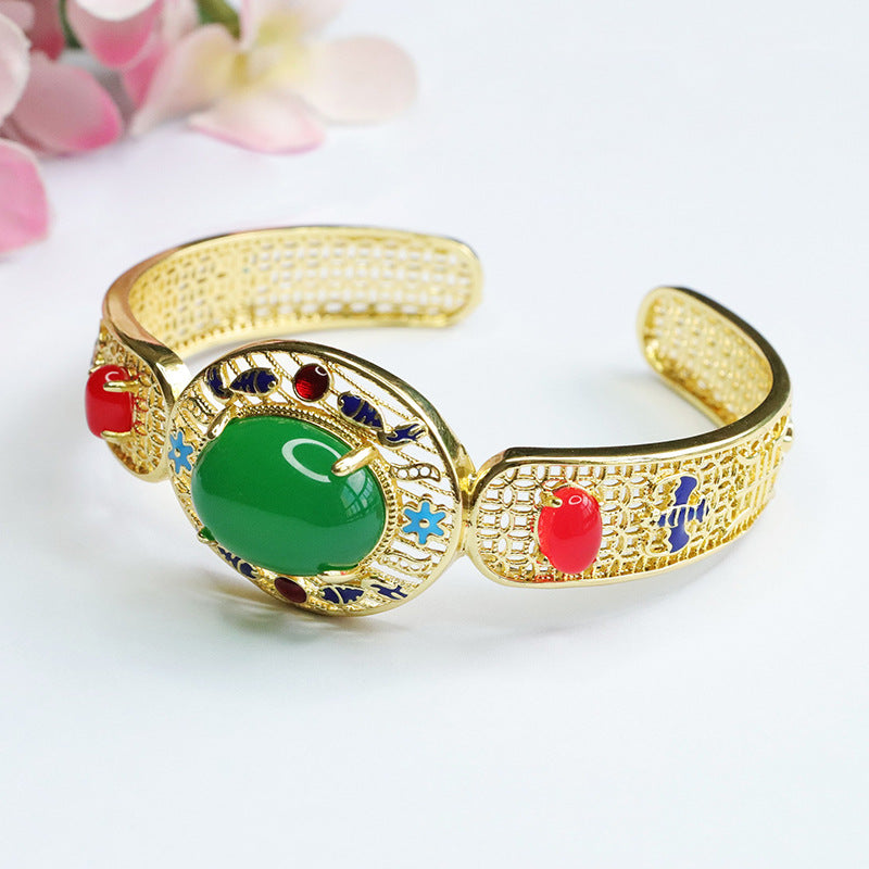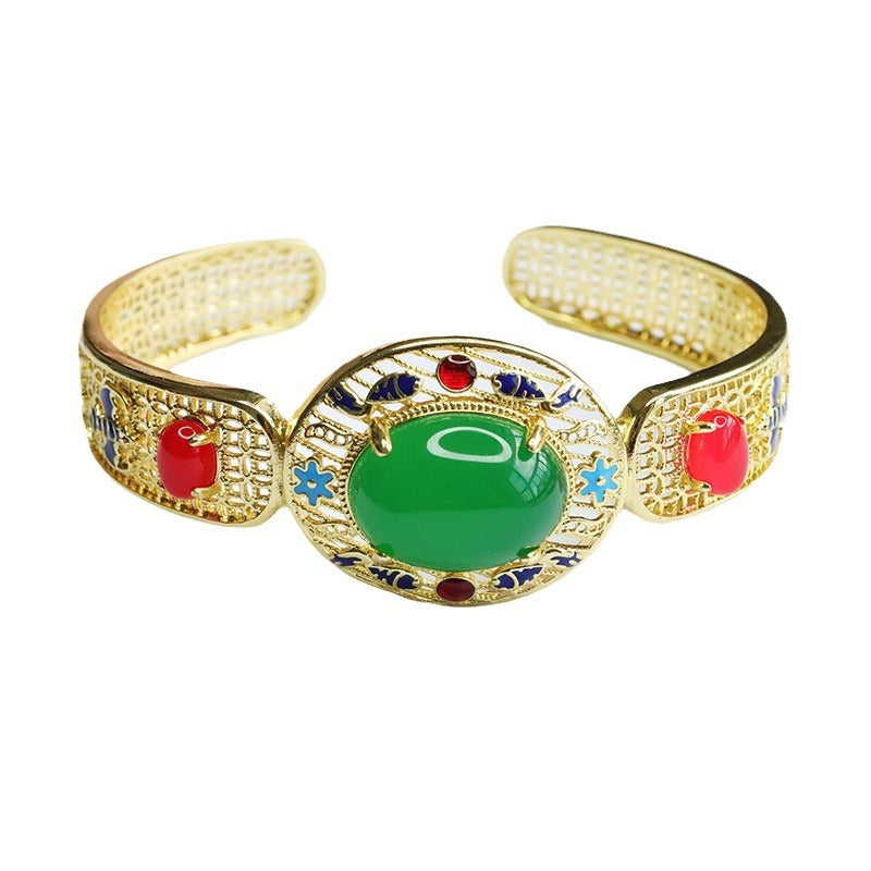 Enhance your style with our Natural Green Chalcedony Bracelet, Red Agate Hollow Golden Bracelet, Ethnic Style. Crafted with precision and top-quality materials, this bracelet exudes elegance and charm.