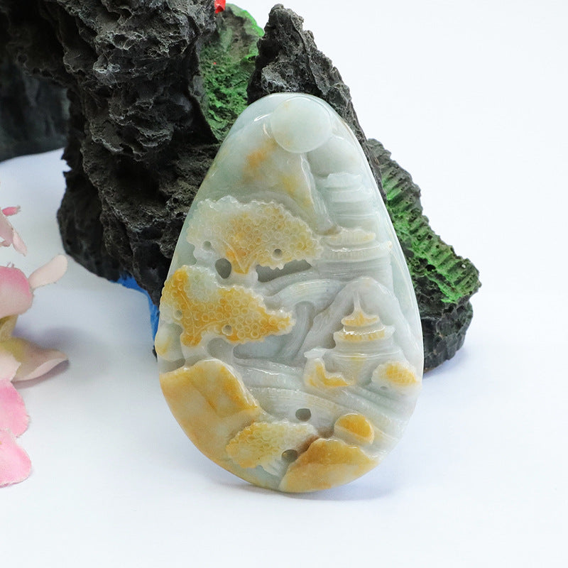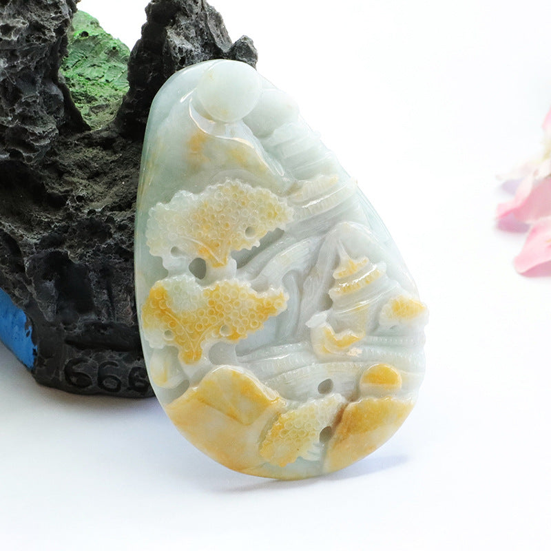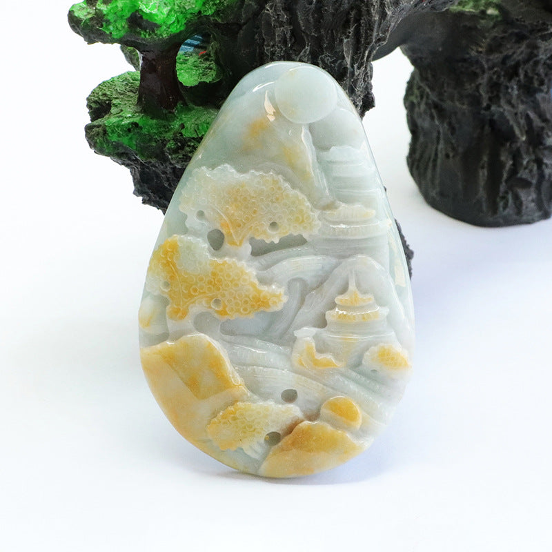 Discover the exquisite beauty of our Fortune's Favor collection with this stunning Natural Myanmar A-grade Jade Pendant. Crafted with precision and care, this pendant features a unique landscape sculpture that blends two captivating colors, making it a true statement piece.