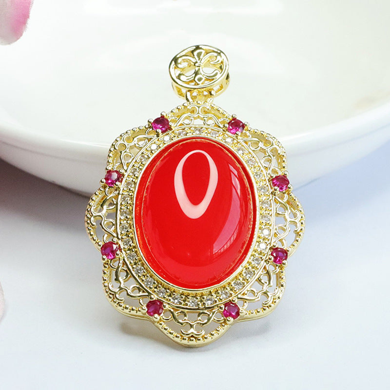 Pigeon Egg Blood Red Agate Luxurious Zircon Pendant