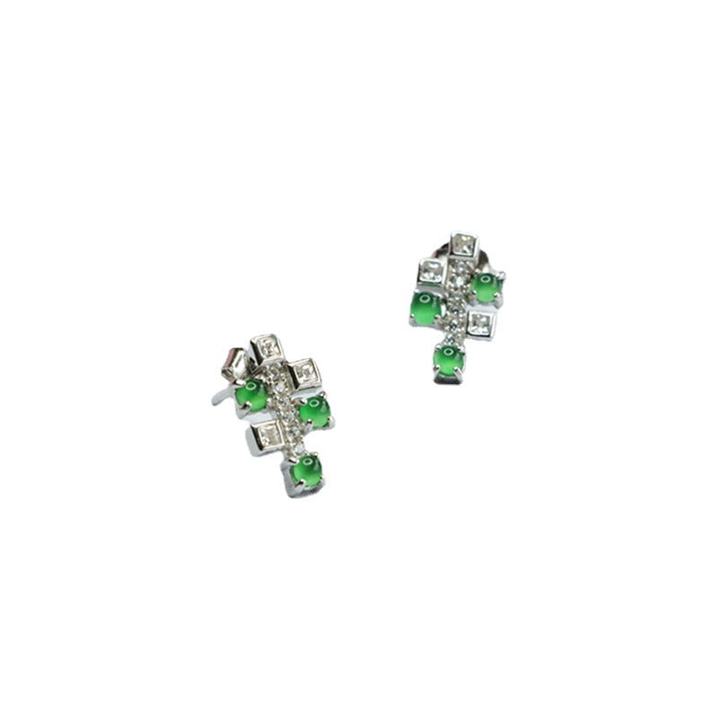 Elegant Ice Emperor Green Jade Sterling Silver Stud Earrings