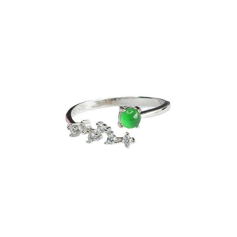 Sterling Silver Adjustable Ice Emperor Green Jade Ring with Zircon Stars