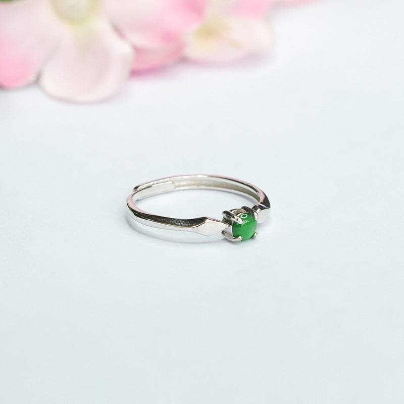 Sterling Silver Adjustable Ice Imperial Green Jadeite Ring