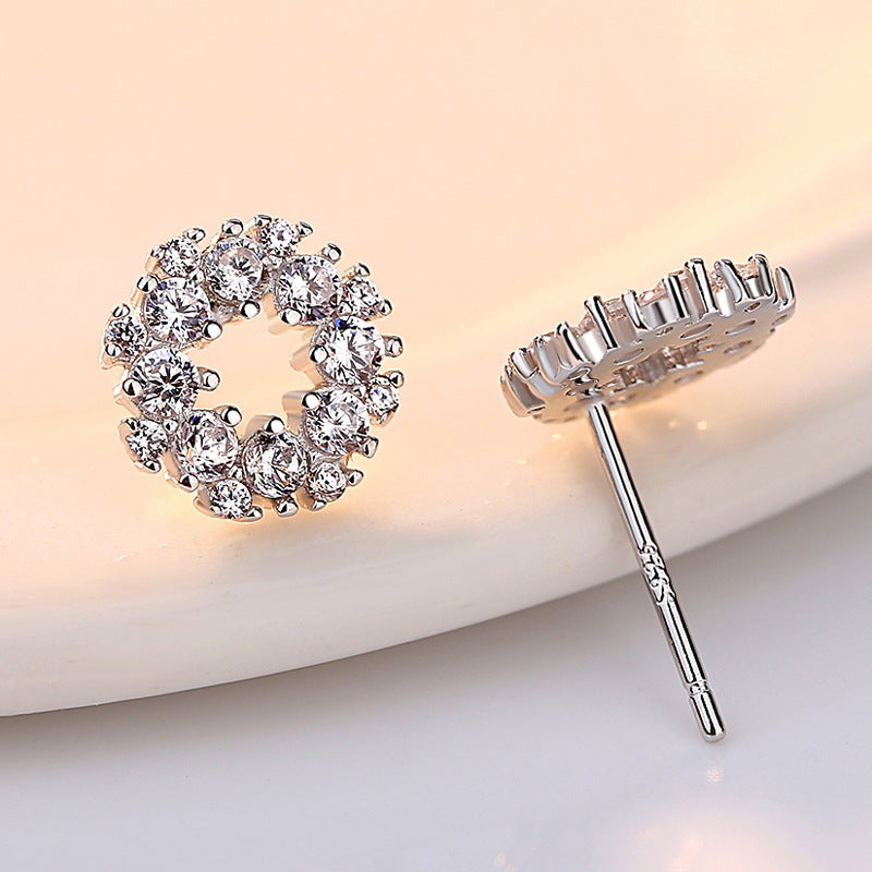 This Zircon Round Silver Studs Earrings for Women is carefully crafted with a circle of Zircon stones. Perfect for wearing on any occasion, this timeless earrings will lend a subtle sparkle to any look.