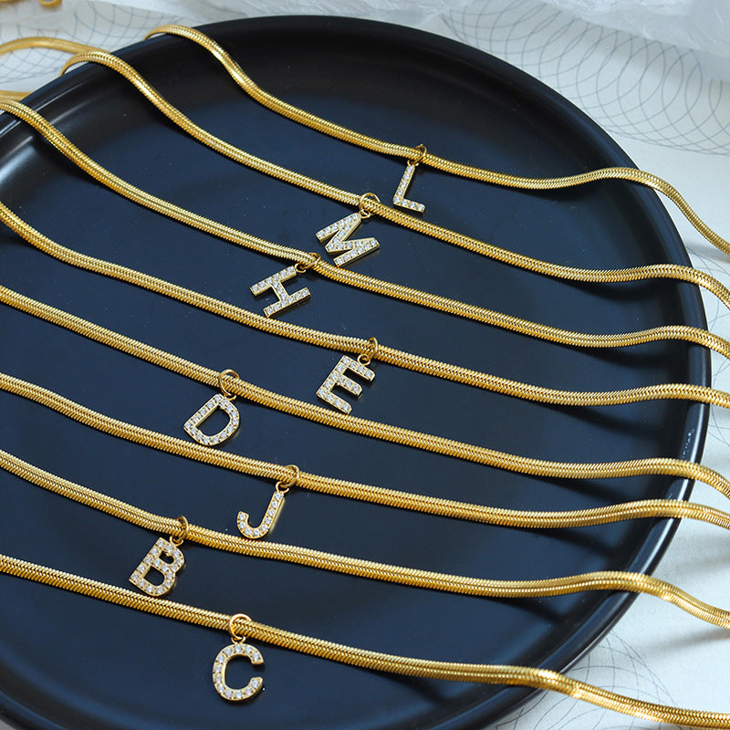 Exquisite Korean Style Zircon Letter Pendant Necklace with Blade Chain