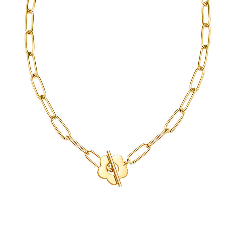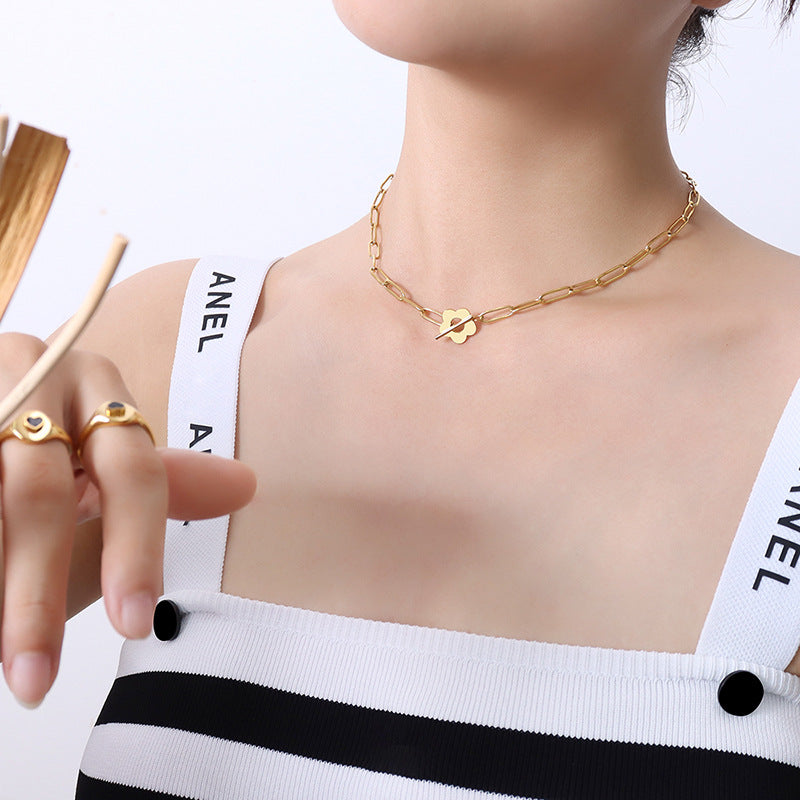 Korean Instagram-inspired Metal Flower Necklace with Gold Plating and OT Buckle Detail