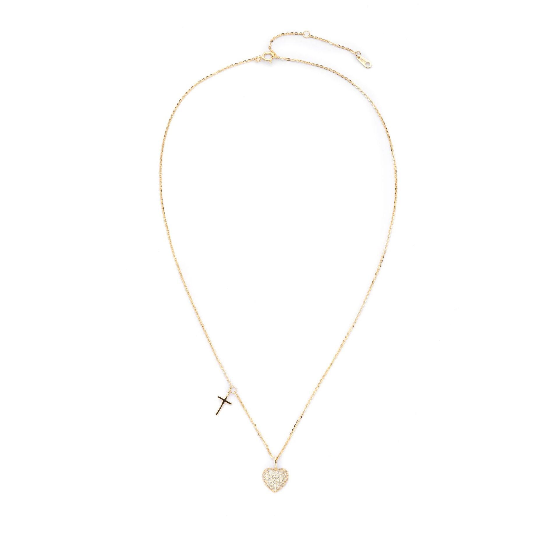 Korean S925 Silver Necklace Female Full Zircon Love Cross Pendant