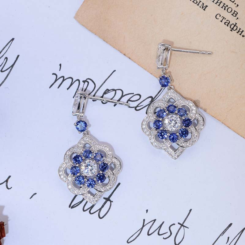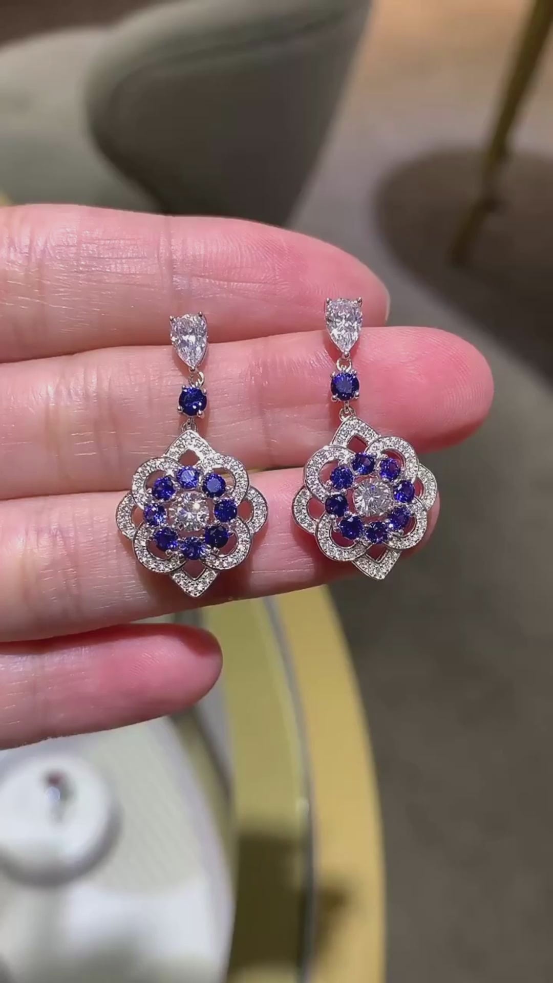 This exquisite silver drop earrings feature lab-created sapphires in a beautiful flower shape. Ideal for a special occasion, each earring is crafted with sterling silver for a timeless look. Make an unforgettable impression with this elegant earrings.