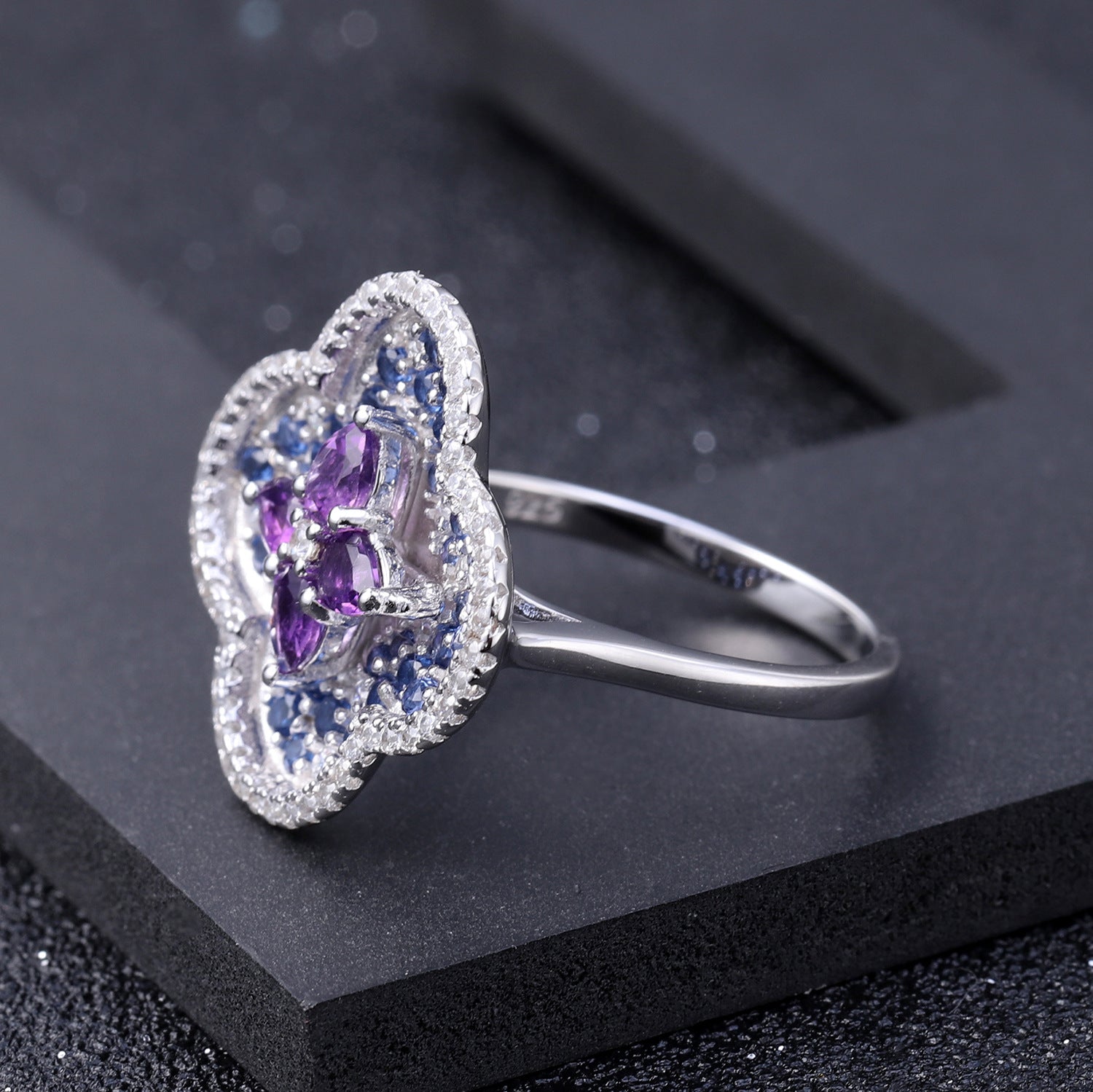 This beautiful Flourishing Flower Natural Amethyst Silver Ring is crafted with elegant sterling silver and a gorgeous natural amethyst. The perfect accessory for any style, this ring will add a touch of luxury sophistication to any look.