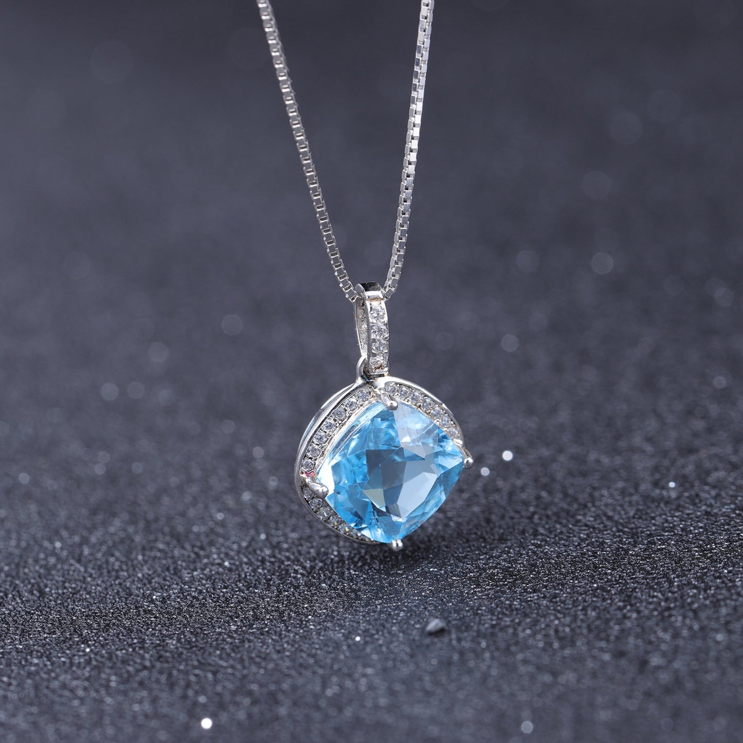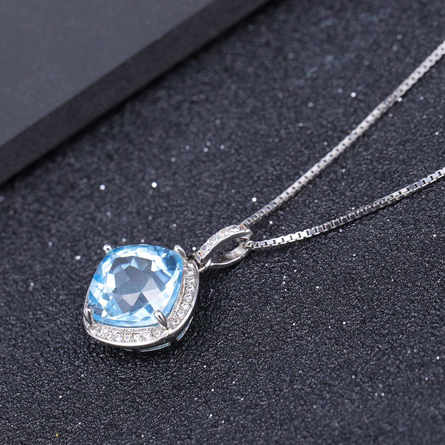 This necklace is the perfect gift for any occasion. Crafted in sterling silver, it features a beautiful square natural blue Topaz pendant in a soleste halo setting that will shine with elegance - perfect to upgrade any wardrobe.