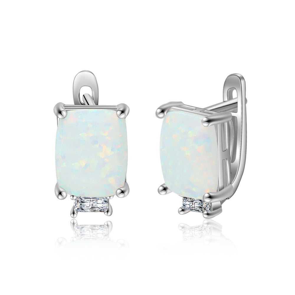 Rectangle Opal with Small Baguette Cut Zircon Sterling Silver Earrings