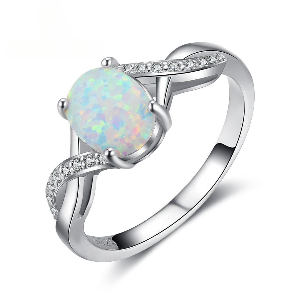 Oval Opal Interwoven Split Shank Zircon Sterling Silver Ring