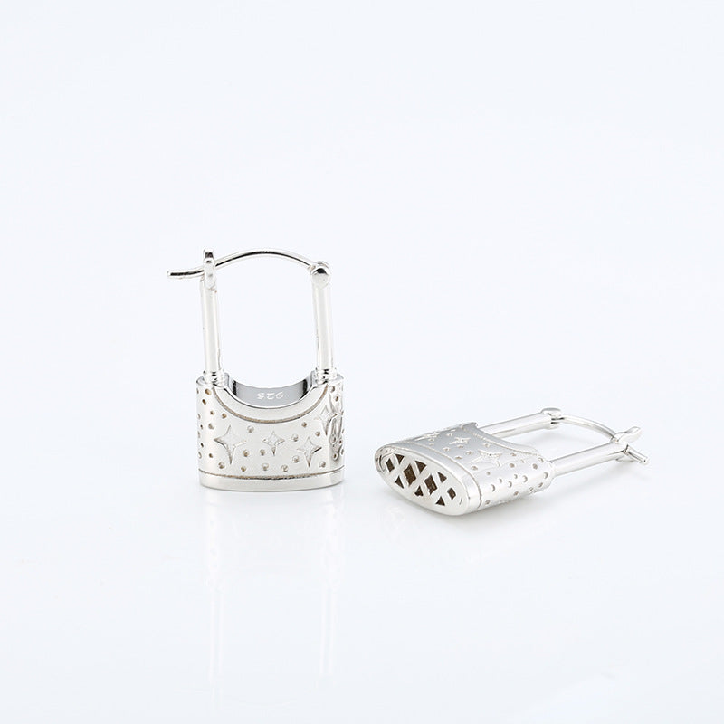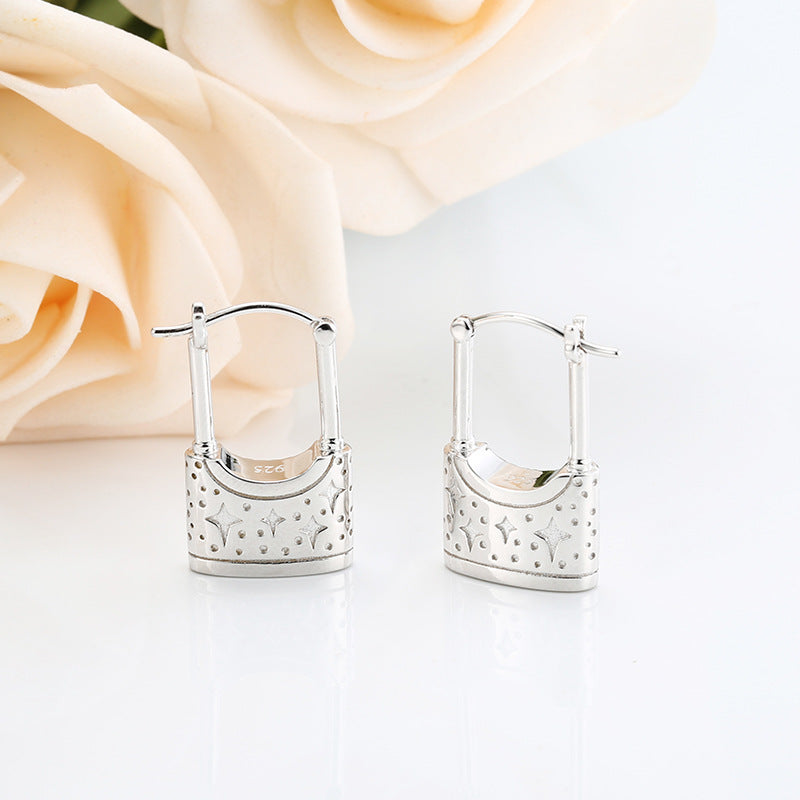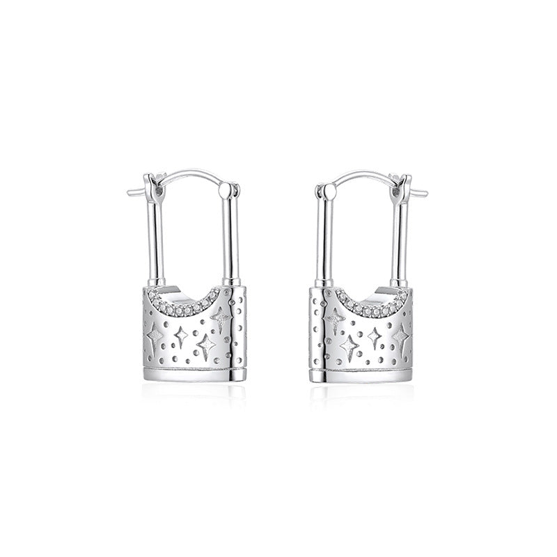 Star Pattern Lock with Zircon Silver Drop Earrings for Women