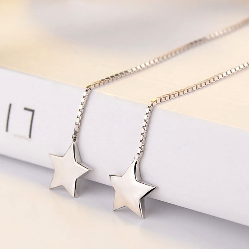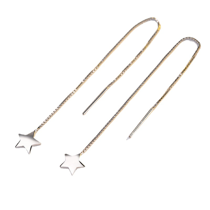 Long Tassle Star Ear Line Silver Drop Earrings for Women