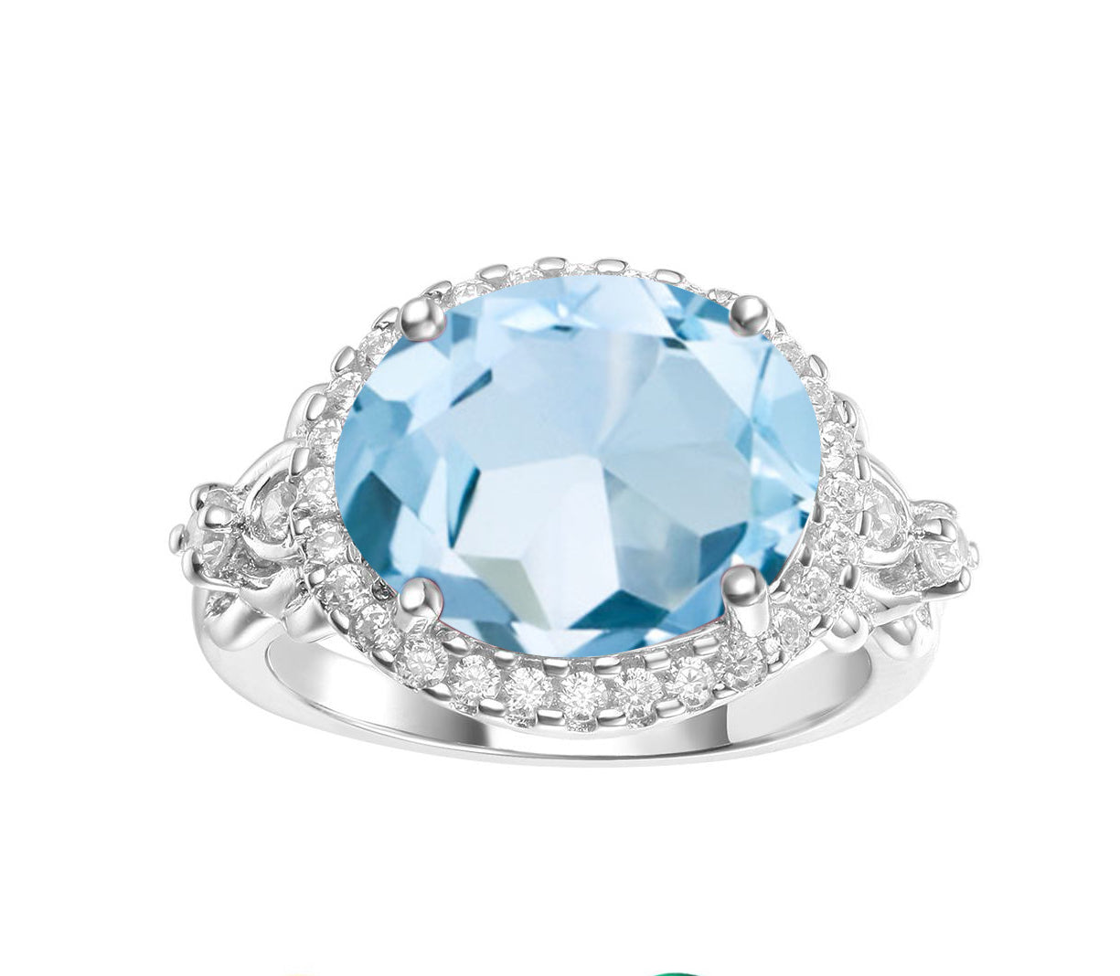 This Cathedral style Natural Gemstone Oval Soleste Halo Silver Ring provides a luxurious look with stunning details. Crafted of sterling silver, the ring is topped with a large oval-cut natural gemstone, encircled with a delicate soleste halo. A perfect accessory for any ensemble.