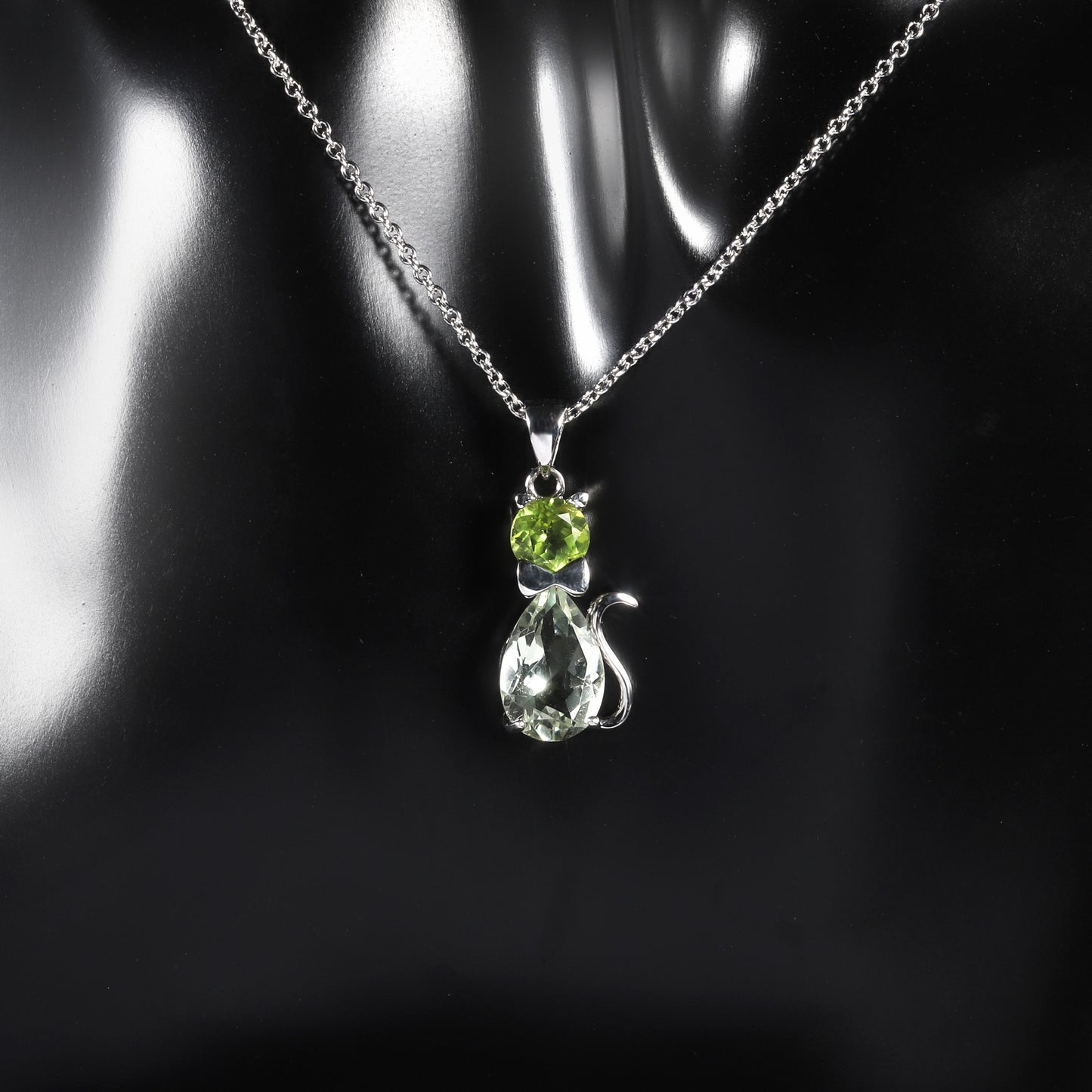 Made of sterling silver, this beautiful necklace features a unique Creative Cat Pendant inlaid with green Natural Crystal. It's a luxurious jewelry piece that adds style and elegance to any woman's look. It's the perfect gift for any cat lover!