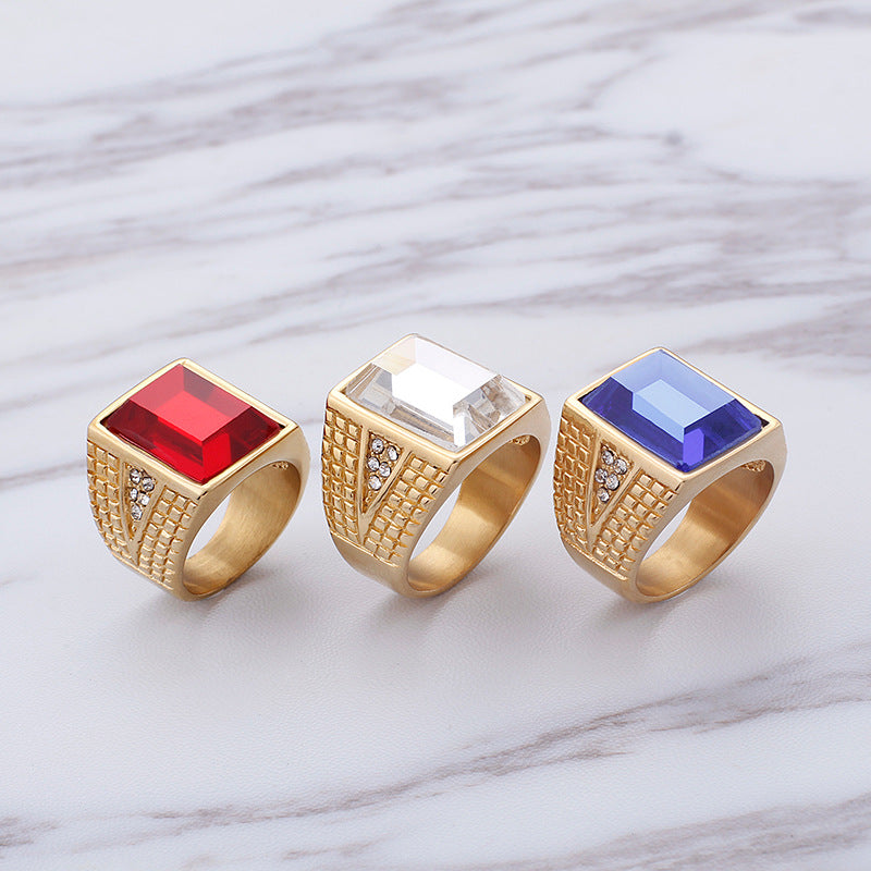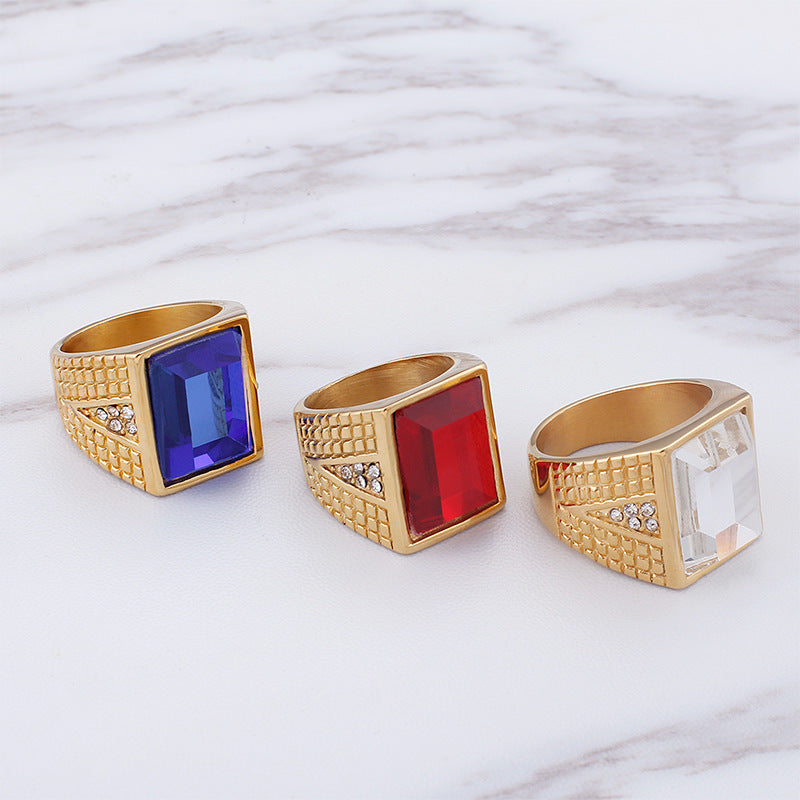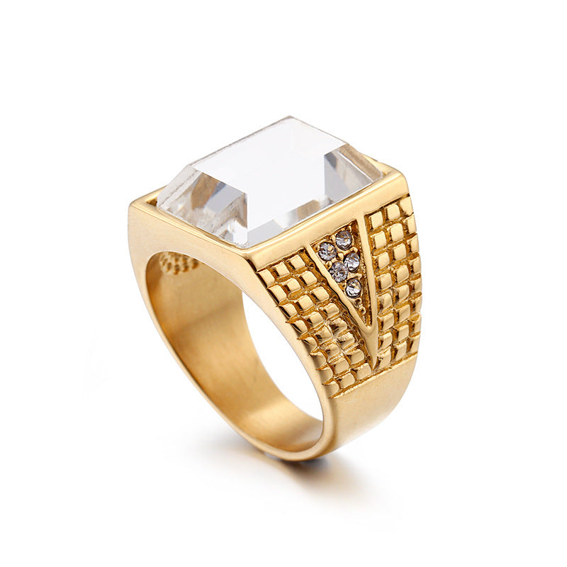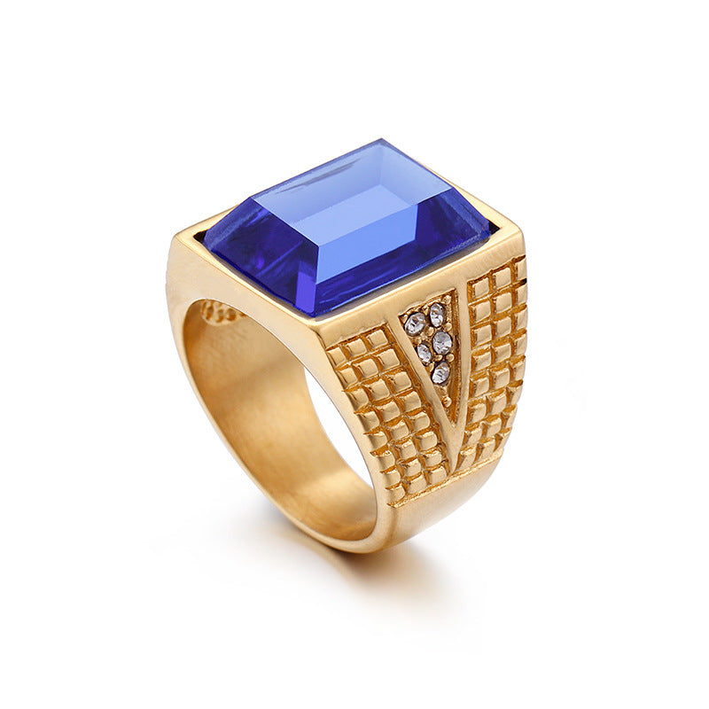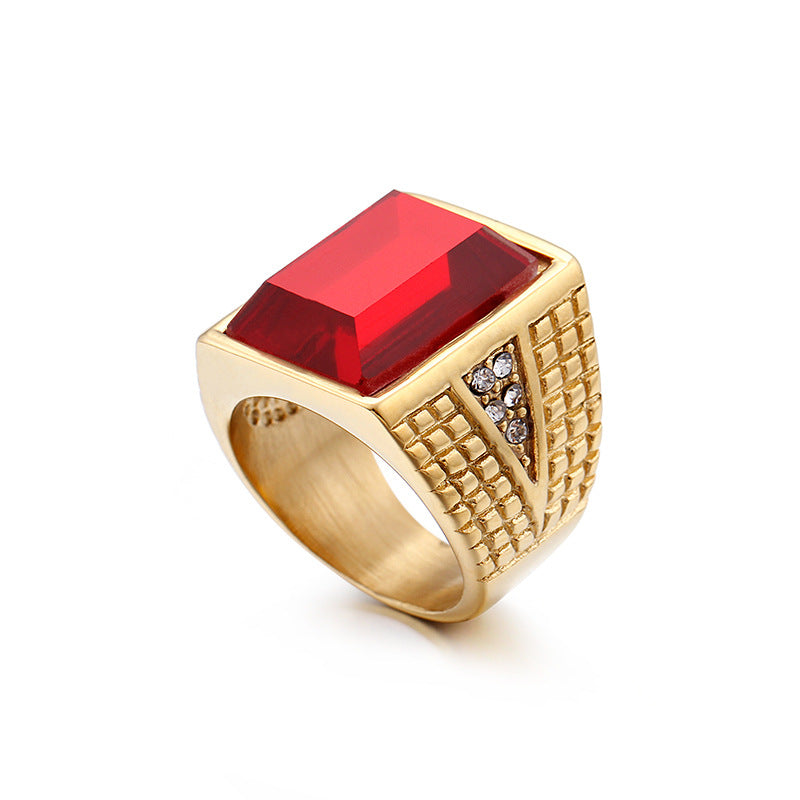 Wholesale Stainless Steel Retro Gemstone Gold Ring for Men - Stylish Domineering Fashion Accessory