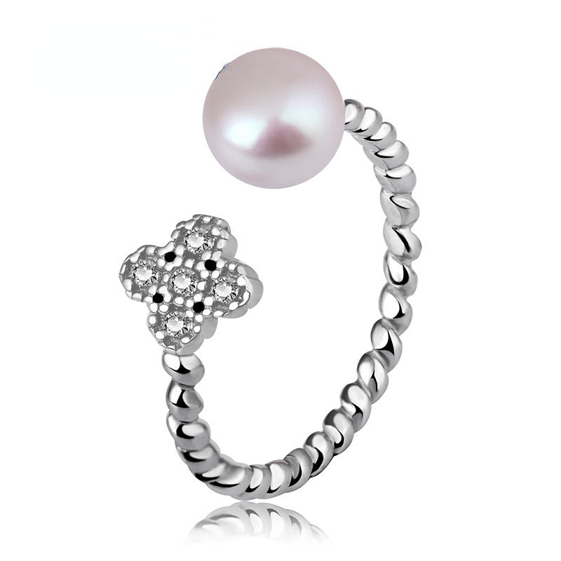 This Zircon Lucky Clover with Pearl Opening Silver Ring is an elegant way to add an extra touch of style to any outfit. Crafted with an opening design and spiral ring band, this ring is decorated with a Zircon Lucky Clover and a round pearl for a sophisticated look.