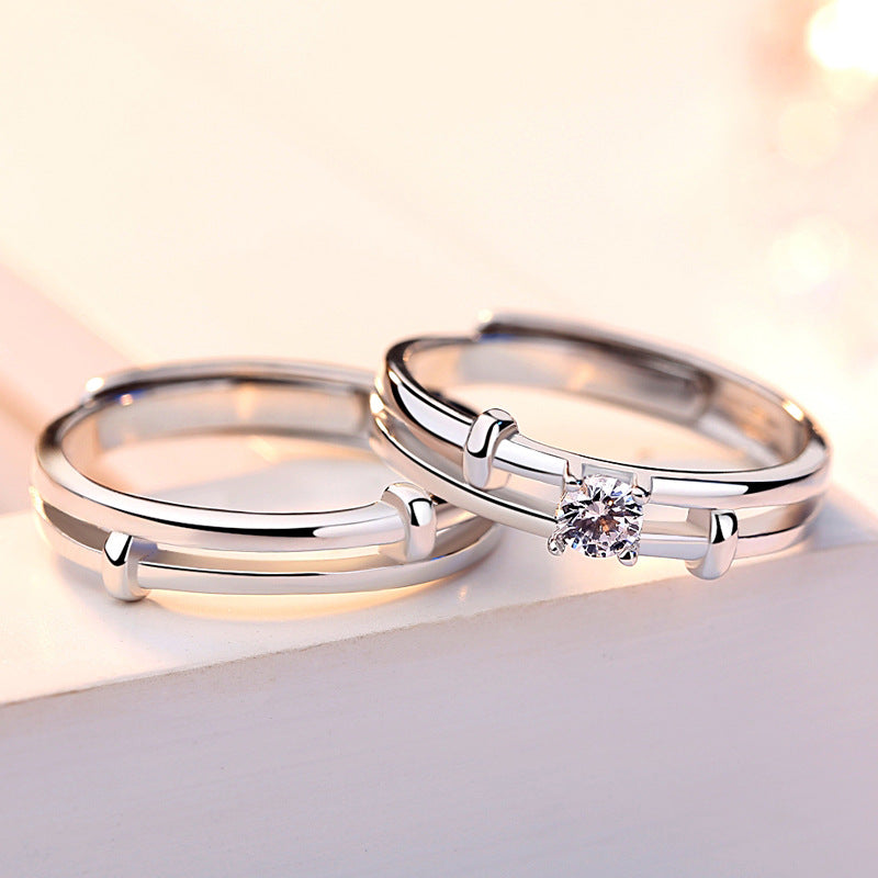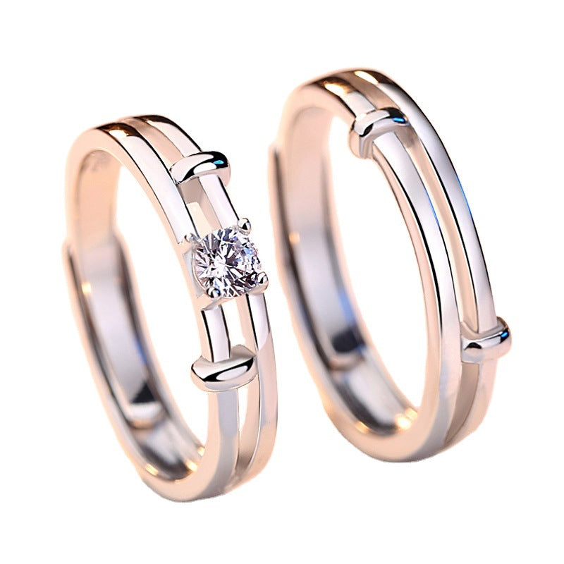 Stylish and eye-catching, this Silver Couple Ring with Zircon is the perfect way to express your love. The adjustable opening couple ring is designed to fit any finger size, while one is decorated with a round Zircon for extra elegance. Express your enduring commitment with this timeless piece of jewelry.